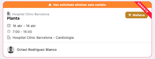 El turno queda en estado "Has solicitado eliminar este cambio". No podrás editar ni hacer ninguna accción sobre este turno.