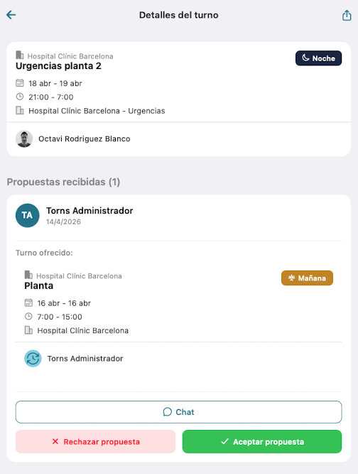 Una vez has recibido propuestas de cambio para un turno de trabajo, podrás decidir qué propuesta aceptas.