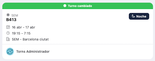 Turno cambiado: muestra una franja superior de color verde. Es un turno del que has aceptado un cambio.