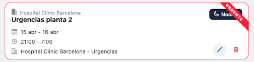 Turno urgente: muestra un aviso de "URGENTE" y un borde de color rojo. Este turno tiene inicio durante las próximas 48 horas.