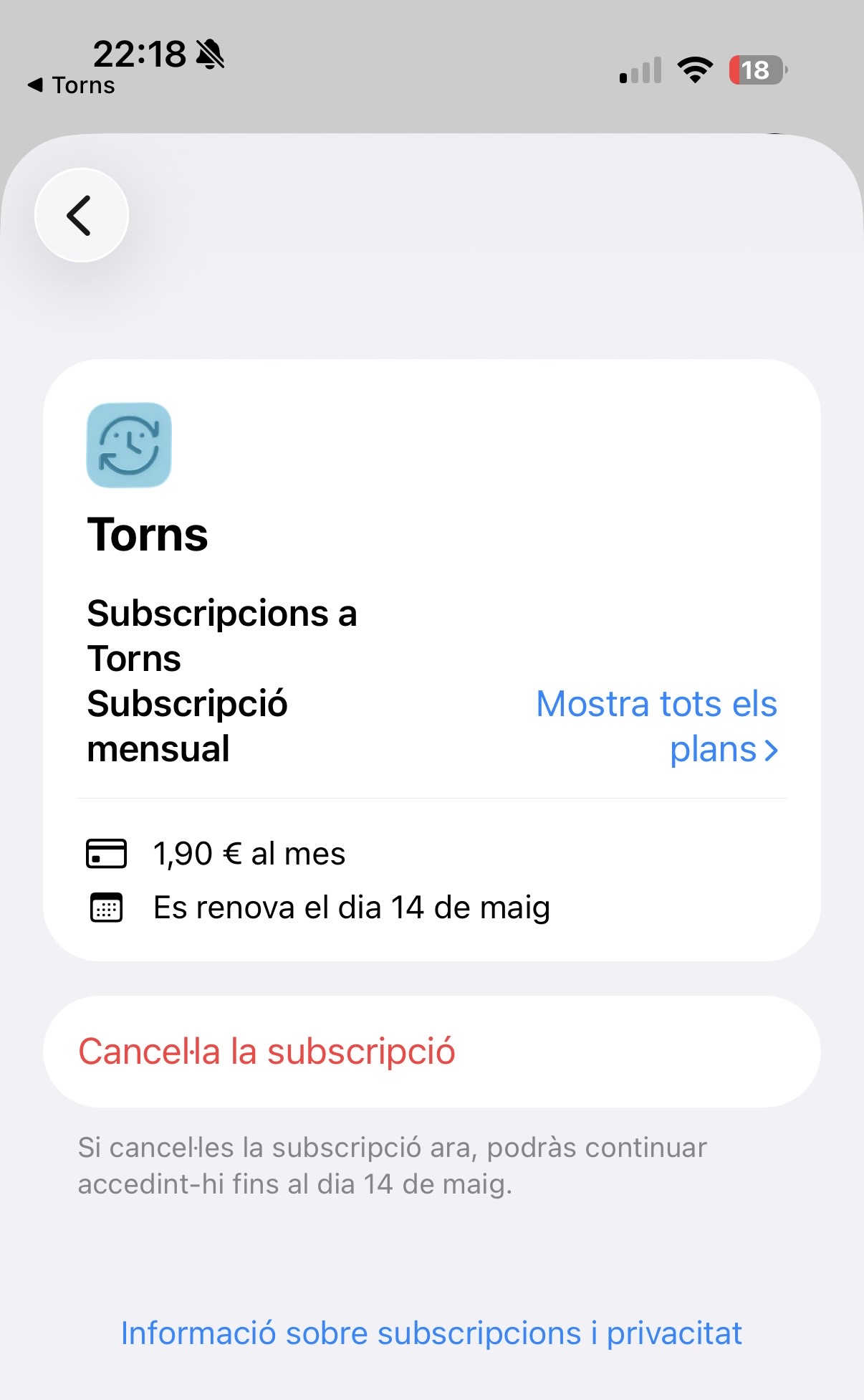 Todos los pagos y gestión de las suscripciones se realizan directamente a través de Google Play o AppStore. Torns no tiene acceso a tus datos bancarios.